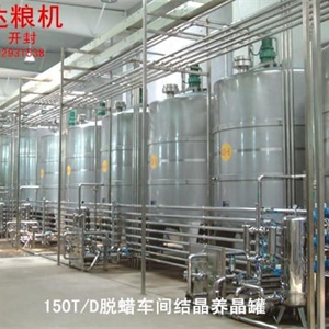 油脂脫蠟設備主要是指去除蠟脂使油品色澤鮮亮。工藝流程:結晶、養(yǎng)晶、蠟脂過濾、冷水循環(huán)等來實現(xiàn)的。